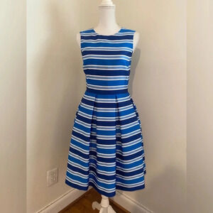 Carolina Herrera Silk Pleated Sleeveless Striped Fit and Flare Dress Size 4 NWOT