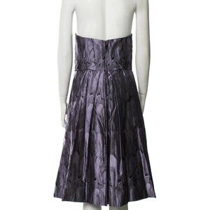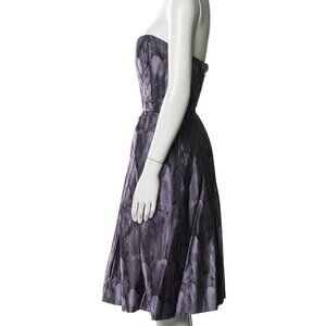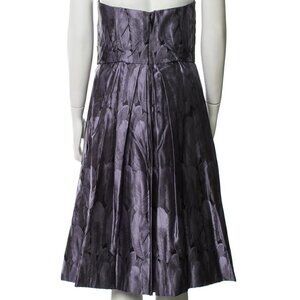 Carolina Herrera Strapless Corset Bodice Feather Print 100% Silk Midi Dress 8 US