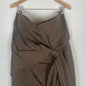 Carolina Herrera Strapless Silk Faille Gown Size 20 Color Brown Build Up Corset