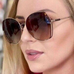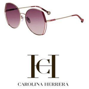 Carolina Herrera Sunglasses SHE162 Oversized Geometric Gold Burgundy Metallic