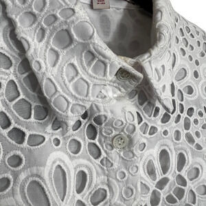Carolina Herrera Top Sz 4 White Eyelet Button Down Long Sleeve Cotton Boho Chic
