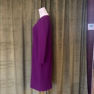 Chic long sleeve dress in vibrant purple. Perfect for elegant occasions. Designed by Carolina Herrera. Excellent condition