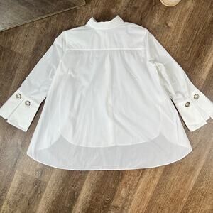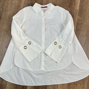 Carolina Herrera White Button Up Shirt Sleeve Ring Decal Oversized Fit
