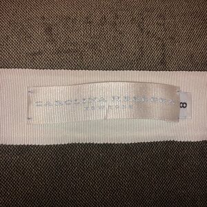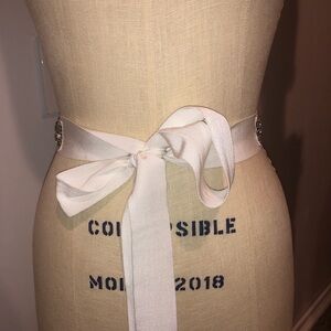 Carolina Herrera bridal sash absolutely stunning item was never used in excellent condition was used as a sample for ordering it’s 16 inches of detailing 41 inches of ribbon on each side = 98 inches all the way around the color is silver and white ribbon