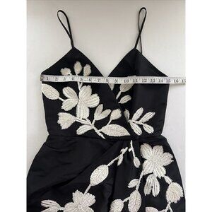 Carolina Herrera size 2 Floral Beaded Embroidered Column Gown Dress Black White