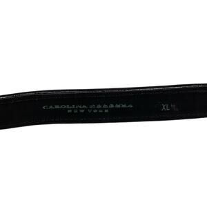Carolina Herrera skinny belt black leather strap with textured canvas patterned
