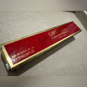 Experience the bold, feminine charm of Very Good Girl Glam by Carolina Herrera. This chic 10ml Eau de Parfum roll-on delivers dazzling notes of cherry, rose, and vanilla in a sleek, travel-friendly bottle. The red glass and gold detailing add a luxurious touch — perfect for touch-ups on the go or gifting someone special. Includes original box.