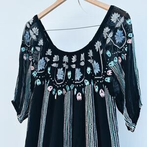 Carolina K Charo Dress Off The Shoulder Maxi Sheer Beaded Embroidered Small