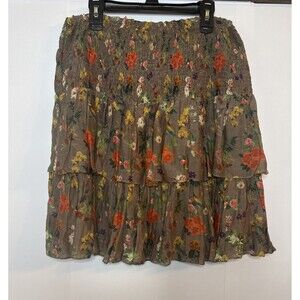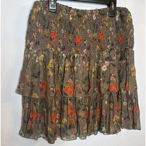 Carolina K Womens Mini Skirt Silk Smocked S Tiered Boho Floral Feminine Ruffle
