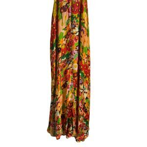 Carolina K Yellow Multicolor Floral Print Halter Sleeveless Midi Dress Size S