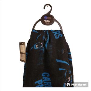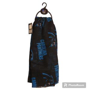 Blue graphics on a black background, this scarf measures 70"x25". The scarf is NWT just waiting for a Panther's Superfan to snatch it up.