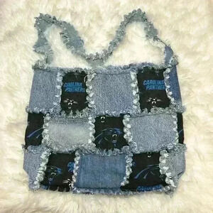 Carolina Panthers Pocketbook Handmade One of a Kind Made of Denim. One small stain shown in last photo. Very cute!