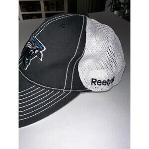 Show off your team pride with this awesome Carolina Panthers Reebok NFL Team Apparel On Field Trucker Hat! This snapback hat is pre-owned but still in great condition. The headband has only a little discoloration from wear, but it doesn't detract from the overall look. Get ready to cheer on your Panthers in style!