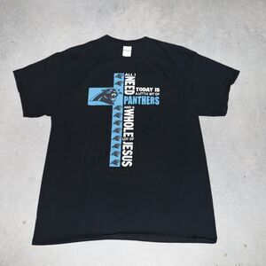 Carolina Panthers Religious Football Black Graphic Crew Neck Tshirt Size Medium