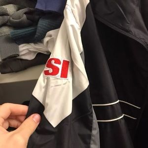 Sports Illustrated Jacket w SI logo in red on left sleeve and Panthers logo on right chest