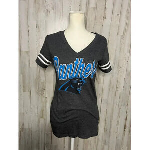 Carolina Panthers Women's V-Neck T-Shirt Gray Size Small NFL Apparel