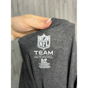 This NFL women's T-shirt in size S features a solid gray color with a V-neck and short sleeves. Made from breathable and soft material, it offers a regular fit suitable for casual occasions, especially during the fall season. The T-shirt is machine washable for easy care. Ideal for sports-themed events or casual outings. Pre-owned condition.