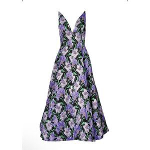 Carolina Herrera Metallic Floral Jacquard A-Line Dress size 6