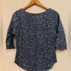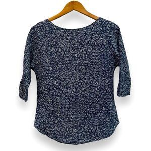 Carolina Herrera Silk Blouse Sz 0-6 3/4 Sleeves Gray Blue Dots