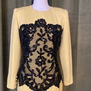 Carolina Herrera yellow lace detailed Sheath Long Sleeve Dress, US6