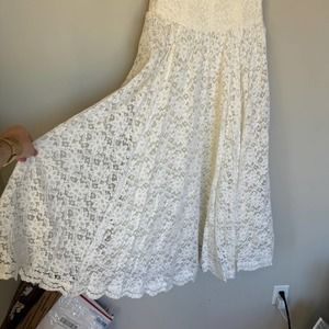 Gently used Caroline Charles London Strapless White Fit and Flare Midi Dress. Great preowned condition - no flaws.