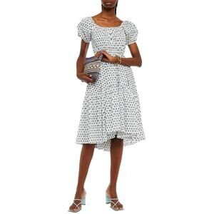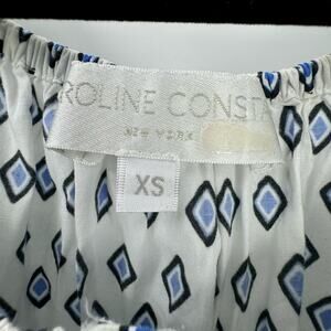 Caroline Consta Bardot Mini Flounce Dress Cap Sleeve Printed White Size XS