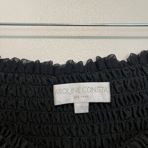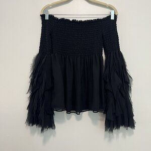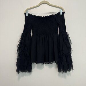 Caroline Constas Alessandra Silk Smocked Off-Shoulder Long Sleeve Top in Black