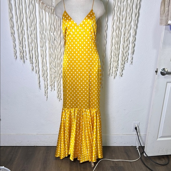 Caroline Constas Amelia Silk Maxi Gown in Saffron and White Polka Dot Size Large