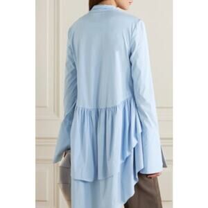 Caroline Constas Blouse Shirt Blue Tatiana Asymmetric Ruffled Cotton Size Large