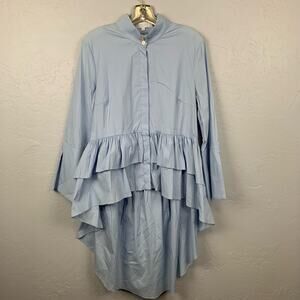 Caroline Constas Tatiana Asymmetric Ruffled Womens Blue Cotton Shirt Size Large