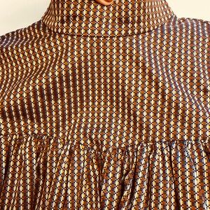 This Caroline Constas blouse features a relaxed and a sophisticated mandarin collar. The long sleeves and brown and white color palette make it a versatile addition to any wardrobe, perfect for both casual and formal occasions.