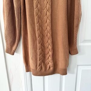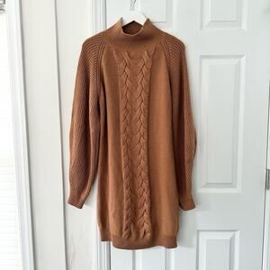 Caroline Constas Cable Knit Wool Sweater Dress Camel Tan Mock Neck Medium Cozy