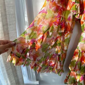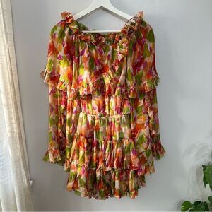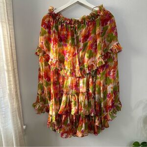 Caroline Constas Dahlia Off The Shoulder Pink Coral Multi Silk