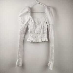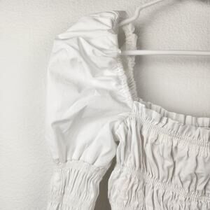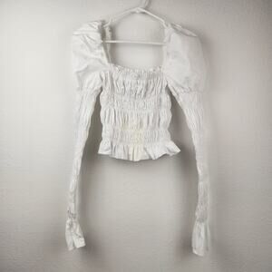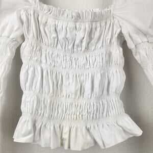 Caroline Constas Delilah Top White Size Large Long Sleeve Puff Shoulders Smocked