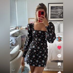 Caroline Constas Elliot Dress Black Spot Floral Size Medium NWT