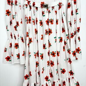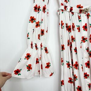 Caroline Constas Fay Dress Retro Floral White Red Cotton Poplin Midi Size Large