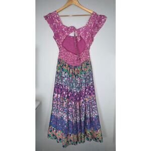 Caroline Constas Floral Smocked Tiered Tie Back Midi Dress Large Cottage Boho