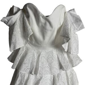 Caroline Constas Irene Ruffle Tiered Off Shoulder White Eyelet Mini Dress Size 4
