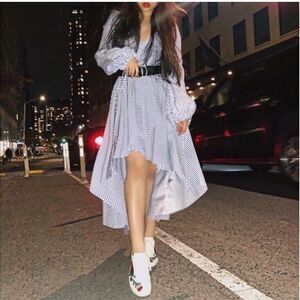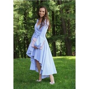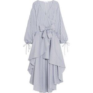 Caroline Constas Lena Striped Wrap Poplin Dress High Low No Sash