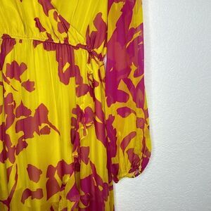 Caroline Constas Liv Maxi Dress High Low Silk Large Yellow/Pink