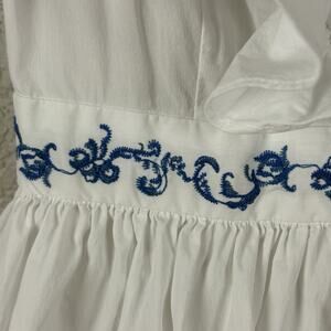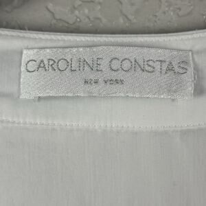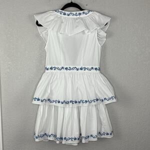 Caroline Constas Miranda Dress Embroidered Ruffle Plunge Neck White Blue Size M