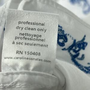 The Caroline Constas Miranda Dress is a stylish and feminine piece that features a floral pattern with embroidered details, a ruffle plunge neck, and flutter sleeves. Made from a comfortable cotton blend fabric, this white and blue dress is perfect for various occasions such as travel, parties, or casual outings. The V-neckline and zip closure add a touch of elegance, while the midi dress length and tiered accents give it a bohemian or cottagecore vibe. Ideal for bridal showers, engagements, or those who love a coquette and Greek-inspired style.