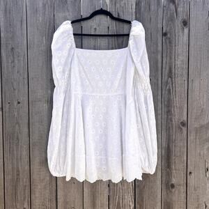 Caroline Constas | NWOT Wren Puff Sleeve Eyelet Mini Dress White Size Large