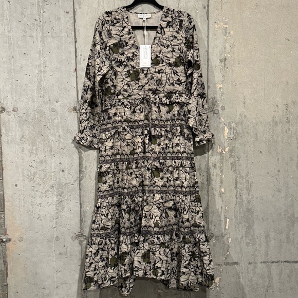 Caroline Constas NWT Size Medium Cotton Floral Print Tiered Midi Dress Wedding