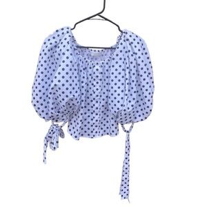 CAROLINE CONSTAS " NELLA" Polka-dot top has playful black polka dots agains a white background wich add energy to the charming Nella top from Caroline Constas Made in the USA the delightful design has a gathered neckline that allows to wear off the shoulder, as well gorgeous blouson sleeves with ties.