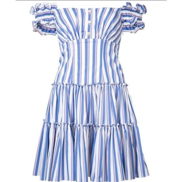 Caroline Constas Off Shoulder Dress Striped Medium M