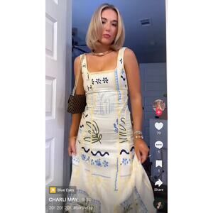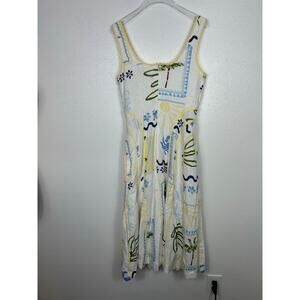 Caroline Constas Palm Tree Print A Line Linen Blend Midi Dress White S Coastal