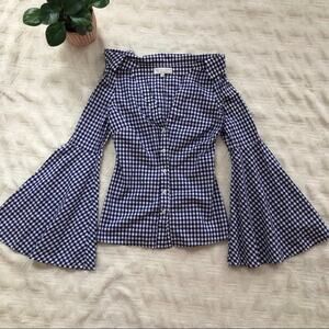 Caroline Constas Persephone Bell Sleeve Gingham Blouse