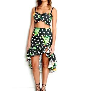 Caroline Constas Polka Dot Fruit Hi-Low Flirty Ruffle Skirt Sz M