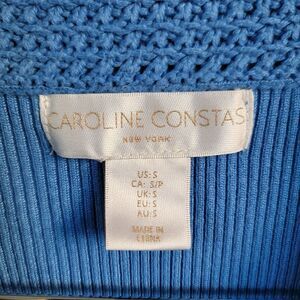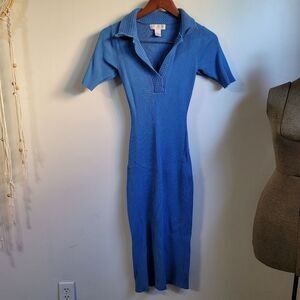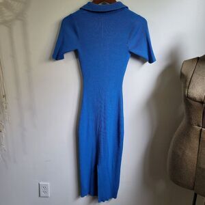 Caroline Constas Ribbed Knit V-Neck Midi Sweater Dress Blue Size Small